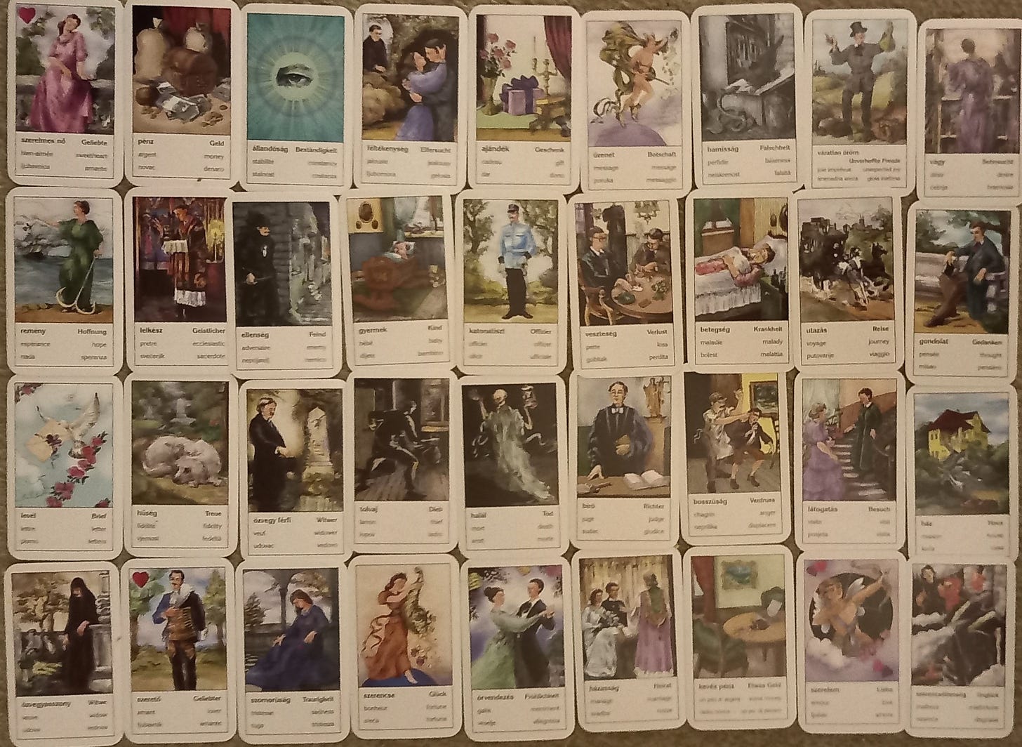 Since we’ve already been covering both the related Vera Sibilla cards and the Grand Tableau, let’s begin September with a Grand Tableau and a similar type of deck: the Austrio/Hungarian “Bohemian” or “Zigeuner” cards, sometimes known as Gypsy cards.