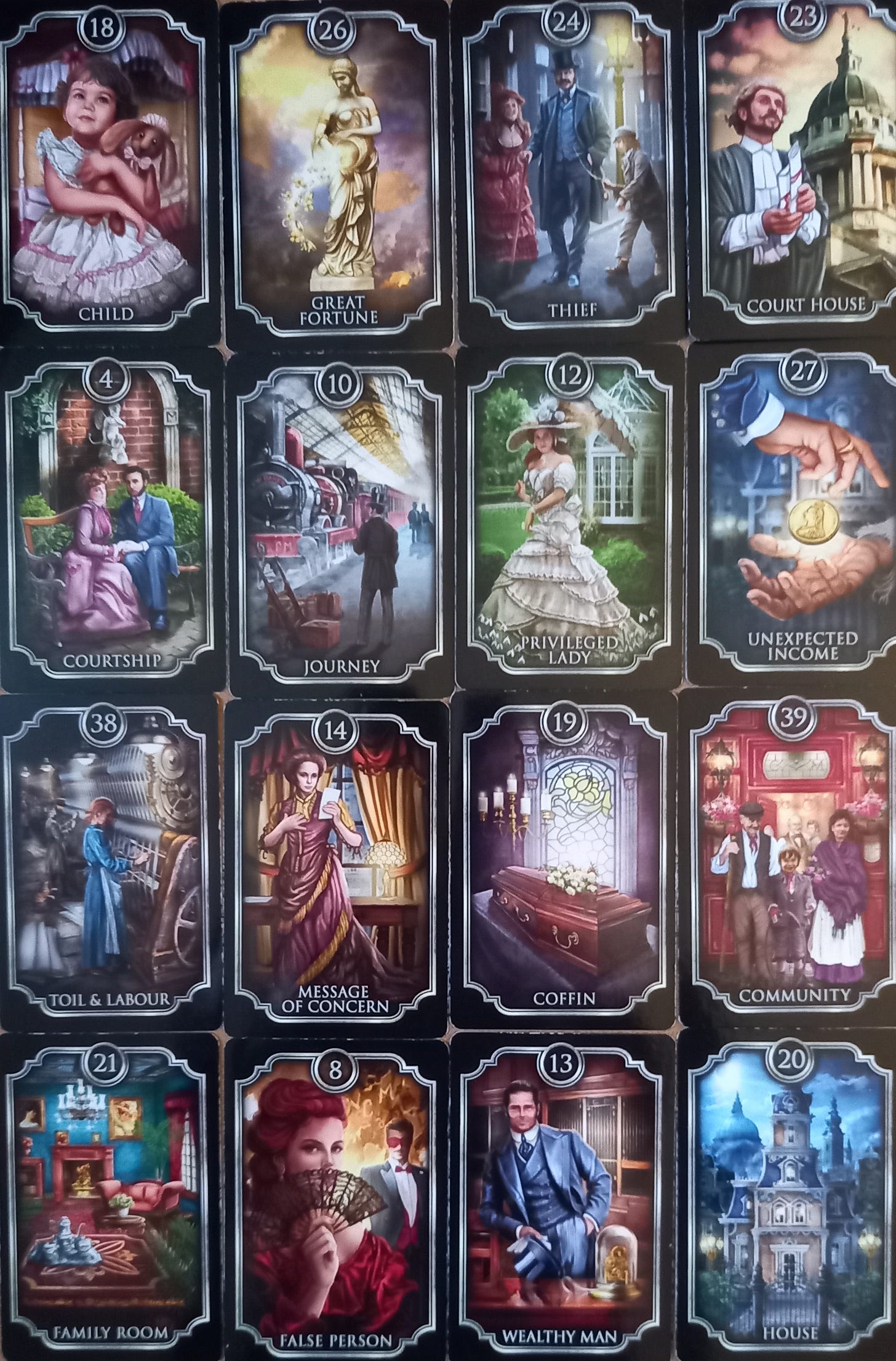 In terms of the decks and spreads, we had two readings this week with the Fin de Siecle Kipper Cards with its additional cards, we looked back at Grand Tableaus with both the Sibilla della Zingara/Gypsy Oracle Cards and the Lenormand. Check out a few of my many posts on reading Grand Tableaus here: